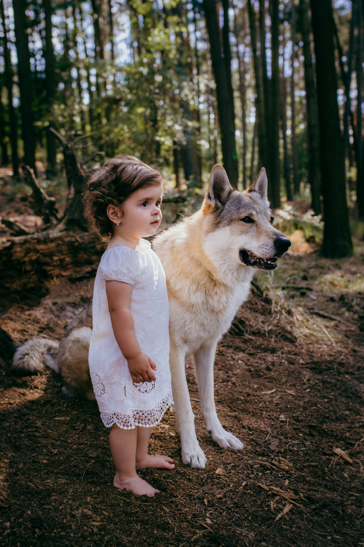 Focení probíhá u lesa v dojezdu do 20 minut od ateliéru. U vlků je běžný počet na focení dva vlci, jedná se o ČSV - wolfdog, plemeno vzniklé křížením vlka a psa, v jiné termíny se fotí s jedním plemenem ČSV a jedním pravým černým americkým indiánským vlkem. Stylizace (výběr a zapůjčení kostýmů a rekvizit, drobná úprava vlasů nebo zapůjčení příčesků) probíhá v teple ateliéru před focením (nikoliv venku!). Termíny jsou sice vypsané v jeden den pro více klientů, ale focení jsou po sobě, tedy každé focení má svůj vlastní vymezený čas na přípravu i focení, pokud jde vše podle plánu, potkáte se pouze při střídání (neobléká se ani nefotí před ostatními klienty, pokud přijedete dřív na focení nebo přípravy, čeká se v autě, v maximální možné míře se vyhýbáme tomu, aby u vašeho focení nebo při přípravách byli další klienti - při brzkém příjezdu se čeká v autě, výjimka je líčení, tam se může stát, že se pak sejdou třeba klientky ze dvou focení ve studiu - jedna se líčí a druhá např. češe nebo obléká v šatně). Focení jdou za sebou, vyměřený čas se dodržuje, focení není možné prodloužit. Pokud nastane zdržení, budeme se snažit vás informovat už ve studiu nebo při příjezdu. Přesné časy vám budou zaslány 2-3 dny před focením dle počtu přihlášených zájemců (v každém vypsaném termínu se fotí více klientů za sebou). Individuální termín je možný s příplatkem 2500,-. Ve stylizaci není zahrnuté líčení, je možné ho dokoupit za cenu 1200 Kč. Pokud si chcete focení maximálně užít v poklidu, mít dostatek času na změny doplňků, rekvizit, lokace, vyzkoušet opravdu všechny možné pózy, a pojmout focení zejména zážitkově, doporučujeme zvolit balíček MAXI, kde je dvojnásobný čas na focení i přípravy.